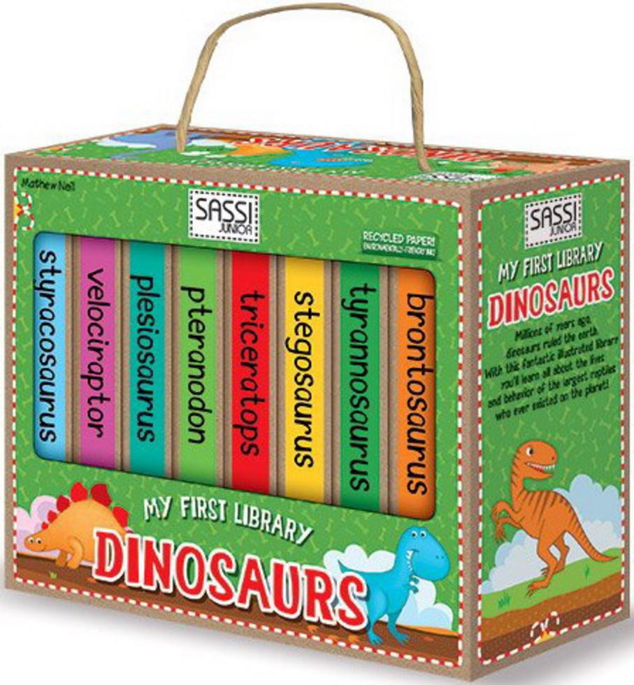 My first collection of dinosaur books, new, hard cover and hard pages.