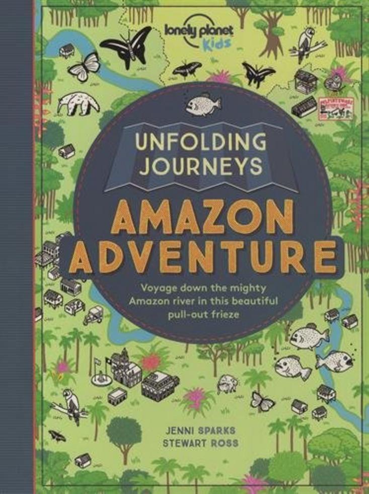 Each title in our Unfolding Journeys series has its own distinct artwork style. Unfolding Journeys - Amazon Adventure's contemporary illustrated icons are etched in black and white against the bright greens, blues and pinks that encapsulate the Amazon's history and landscape.