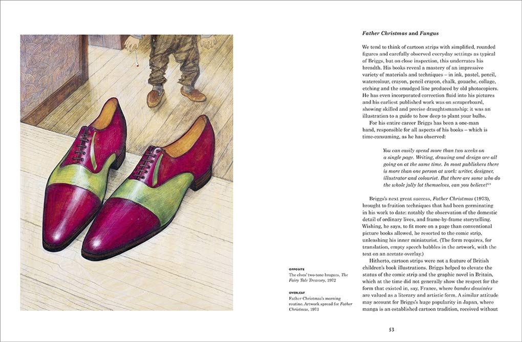 Briggs embraced ideas that defied expectations of picture books. He not only reveled in the depiction of mud and slime, but also imbued his books with themes of class, conflict, and complex emotions. Briggs’s works appealed to a broad array of audiences like that of few others. His classic The Snowman, which has no text, pioneered the possibility of narrative in comic strip form, leaving an important legacy for children’s and adult authors alike. With his empathy for the humble and modest and his ability to provoke both joy and grief, this book shows how Briggs’s illustrations made the ordinary extraordinary.
