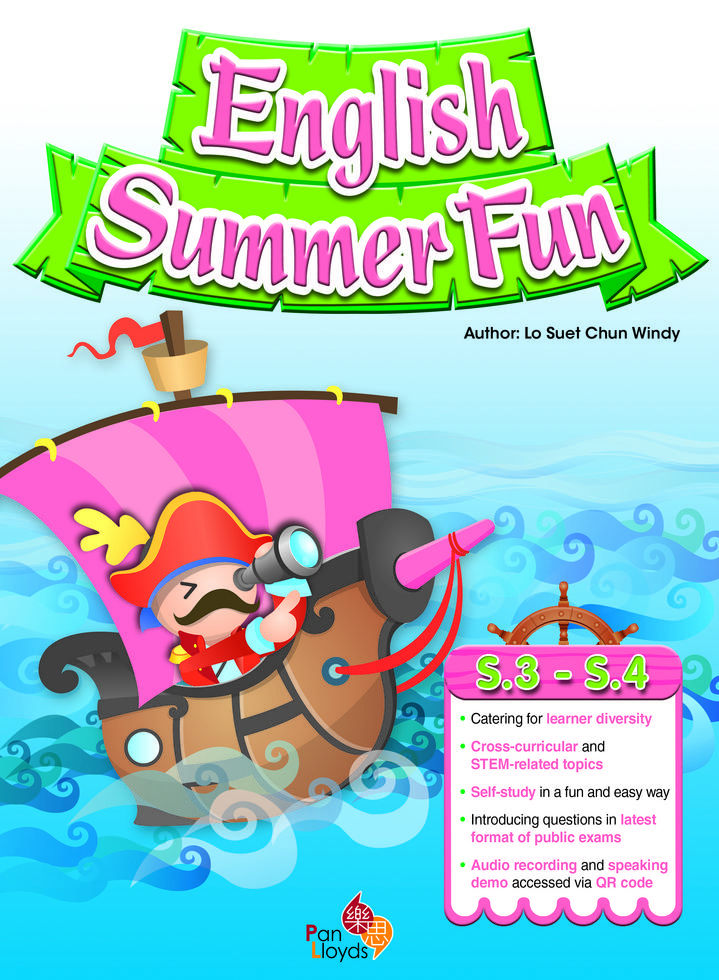 P.6-S.1至S.3-S.4 (共四冊) English Summer Fun is a summer workbook series designed for students from Primary 6 to Secondary 3 to consolidate what they have learnt and to prepare them for the coming school year. The whole series consists of 4 volumes, covering the requirements of the latest KLA Curriculum Guide for English Language Education. Catering for learner diversity with two levels of questions in different sections. Wide-ranging exposure to engaging topics which are cross-curricular and STEM-related. Self-study in a fun and easy way through brief teaching notes and games. Progressively introducing questions written in accordance with the latest format of public exams. 【Comprehensive support】A separate answer key booklet. Files of audio recording and speaking demo can be played by scanning the QR code on the page.