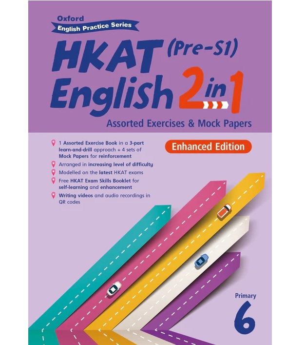 Oxford English Practice Series—HKAT English 2 in 1 Assorted Exercises & Mock Papers (Enhanced Edition) is a three-book exam practice series carefully designed in accordance with the text types, question types and formats of the latest papers in the Pre-S1 Hong Kong Attainment Test.