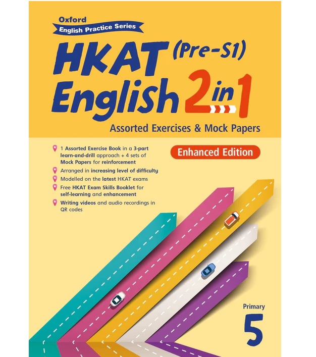 Oxford English Practice Series—HKAT English 2 in 1 Assorted Exercises & Mock Papers (Enhanced Edition) is a three-book exam practice series carefully designed in accordance with the text types, question types and formats of the latest papers in the Pre-S1 Hong Kong Attainment Test.