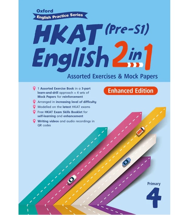 Oxford English Practice Series—HKAT English 2 in 1 Assorted Exercises & Mock Papers (Enhanced Edition) is a three-book exam practice series carefully designed in accordance with the text types, question types and formats of the latest papers in the Pre-S1 Hong Kong Attainment Test.