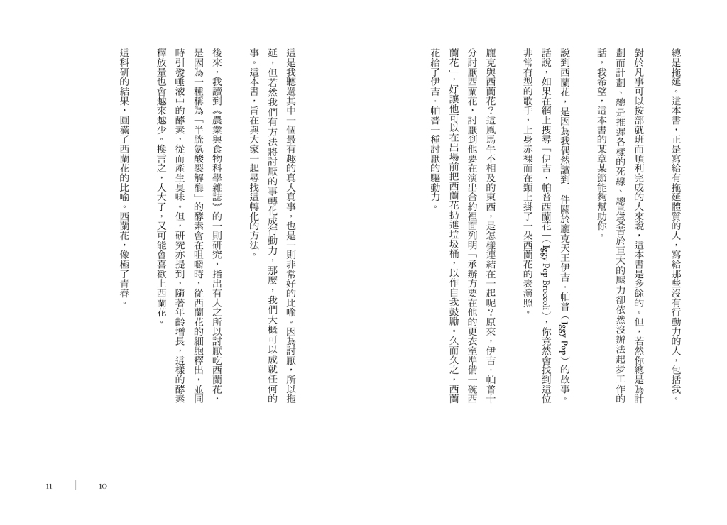 這是我聽過其中一個最有趣的真人真事,也是一則非常好的比喻。因為討厭,所以拖延,但若然我們有方法將討厭的事轉化成行動力,那麼,我們大概可以成就任何的事。這本書,旨在與大家一起尋找這轉化的方法。