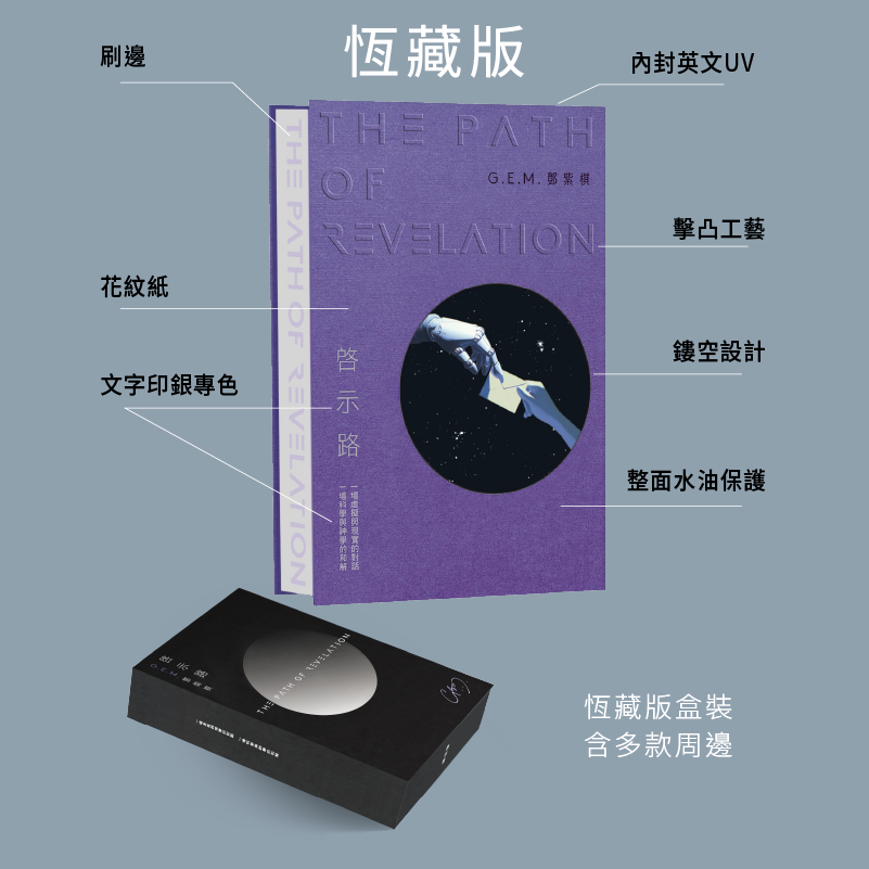 「恆藏版」裝幀:高級花紋紙,封面鏤空設計,擊凸立體手感,印銀提升高級感,整面水油保護,收藏更持久。